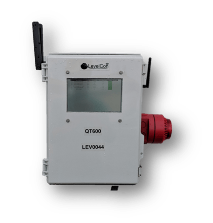 The QT600 monitoring system is the most efficient bulk fuel system on the market today. No need to run conduit or pull cable from tank to tank or a central location anymore. The QT600 comes standard with built-in long-range ISM communication to quickly and efficiently talk to any number of downstream LevelCon devices. The F100M, ISM sensor node, communicates tank level inventories to the QT600, which are displayed on the live outdoor rated touch screen. LevelCon utilizes a submersible or externally mounted pressure sensor and high-level float to deliver overall volume levels coupled with real-time overfill protection. When the high-level float is tripped the F100M sends a signal to the QT600 to de-energize the internal relays that control the pumps. Transmission time between the F100M sensor node and the QT600 relay control occurs in a matter of seconds
